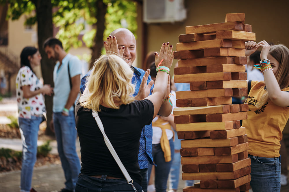 Активності чергуються природно. Твістер, дженга-велетень, настільний покер, спортивні ігри — усе тримається на простих правилах і спільній дії. Кожна гра дає нагоду поспілкуватися, підтримати одне одного, пожартувати.