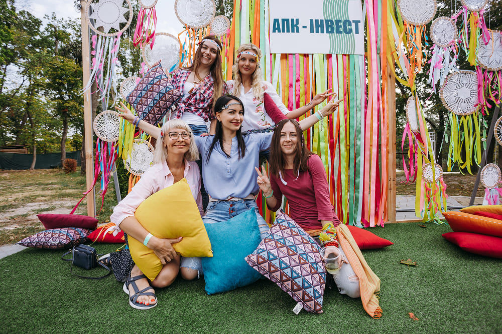 Біля входу — брендована фотозона. Люди зупиняються, фотографуються, сміються. У повітрі легкість, яка одразу знімає робочий тон.