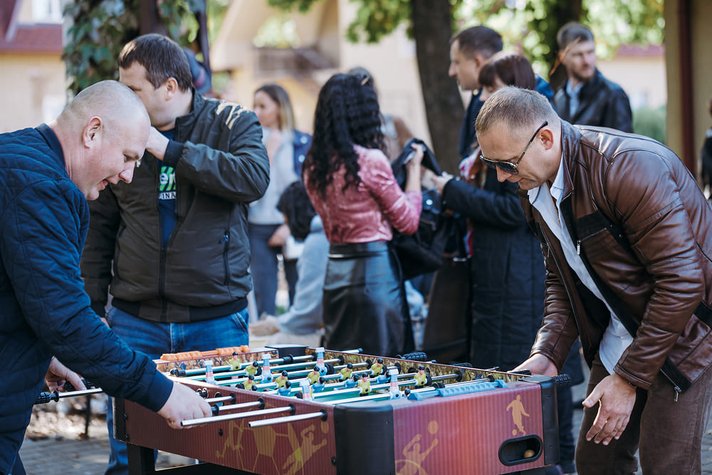 - Спортивні та ігрові зони — від великої Дженги й футболу-кікеру до дартсу та настільних ігор. Тут колеги могли позмагатися у легкому, дружньому форматі.