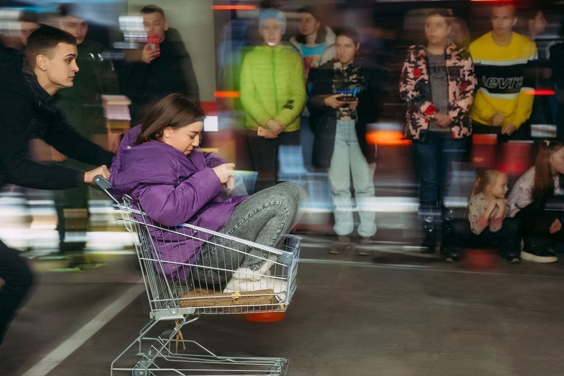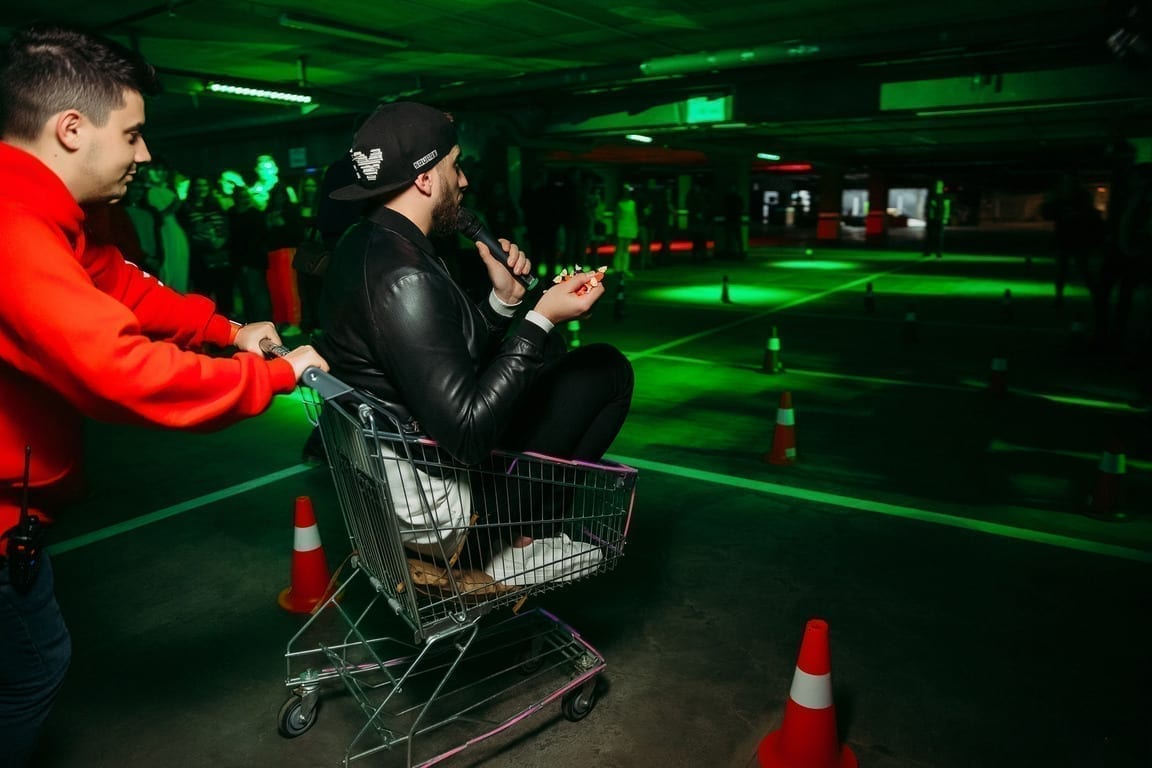 We moved to the underground parking of the shopping center, checked the stage, sound, light and were ready to meet everyone at the loudest pajama party in the city. A cool host maintained the atmosphere and the DJ created amazing music sets. We organized fun races on shopping carts and a real dance battle. It was really cool!